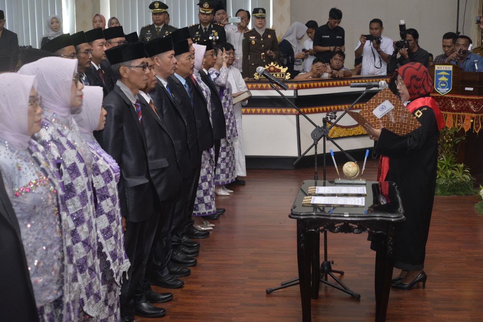 Pelantikan dan pengambilan sumpah jabatan yang dipimpin oleh Ketua Pengadilan Negeri Metro, Vivi Purnawati, berlangsung di Ruang Rapat Paripurna DPRD Kota Metro.