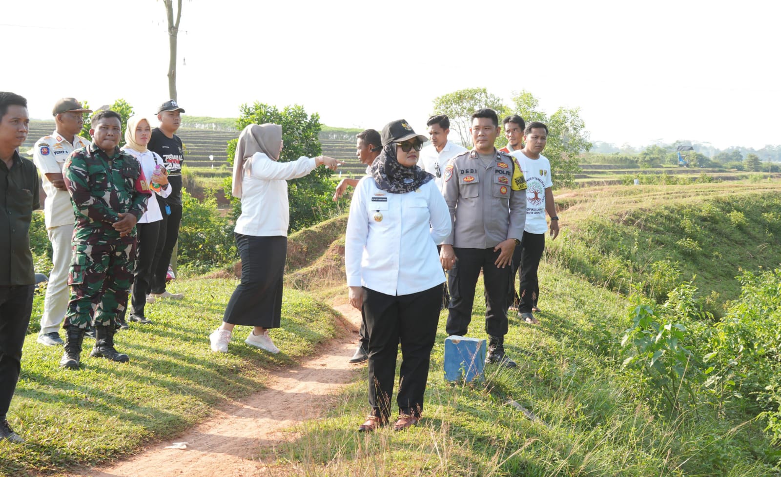 Bupati Lampung Timur, Ela Siti Nuryamah, meninjau langsung rencana pembangunan tanggul penahan tanah (TPT) yang bertujuan menekan pergerakan gajah ke lahan-lahan warga.