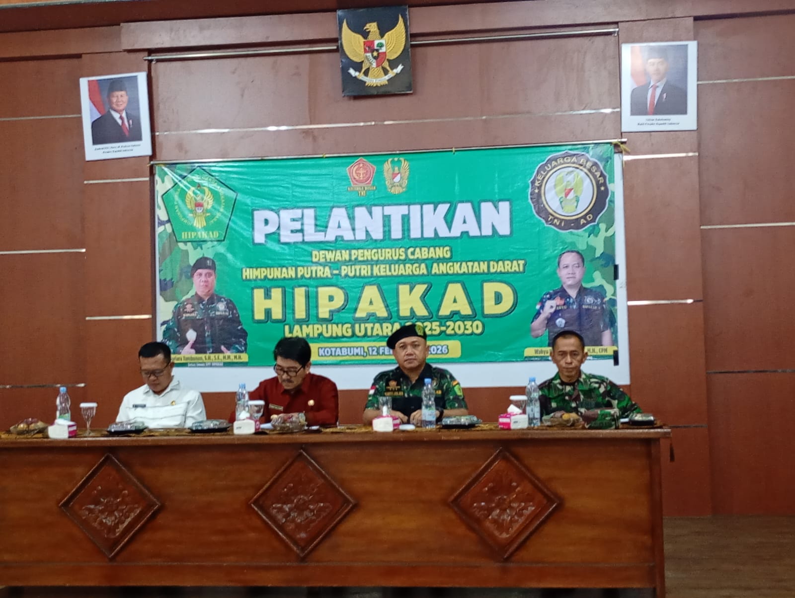 Nahkodanews.com | Lampung – Dewan Pengurus Cabang (DPC) Himpunan Putra Putri Keluarga Angkatan Darat (HIPAKAD) Kabupaten lampung utara Dilantik Di Gedung GSG Makodim 0412/LU, Pada Kamis (12/2/2026) sekitar pukul 10.05 wib.